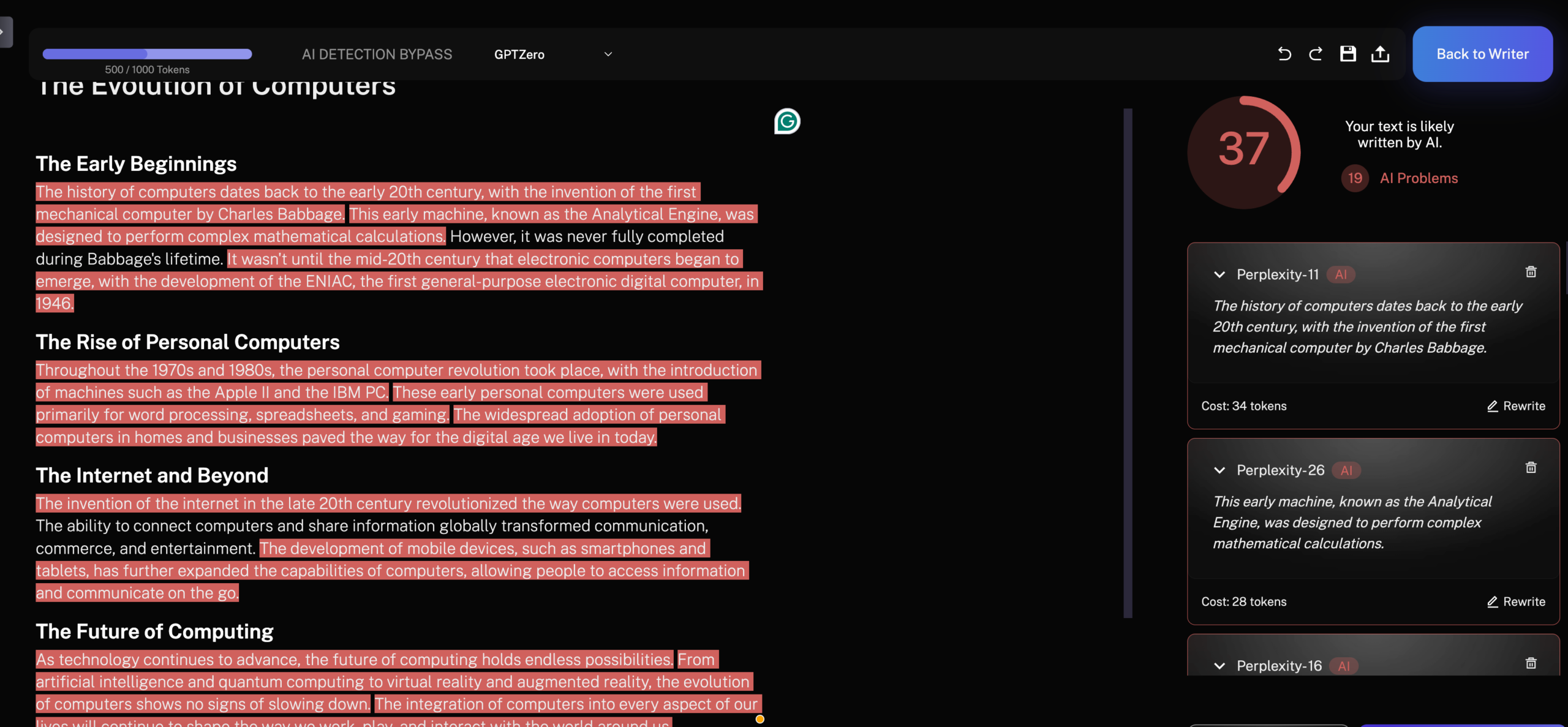 and then start writing or paste your content and click on “Check for AI” and use the suggestions as you can see bellow to make AI detection-free content.