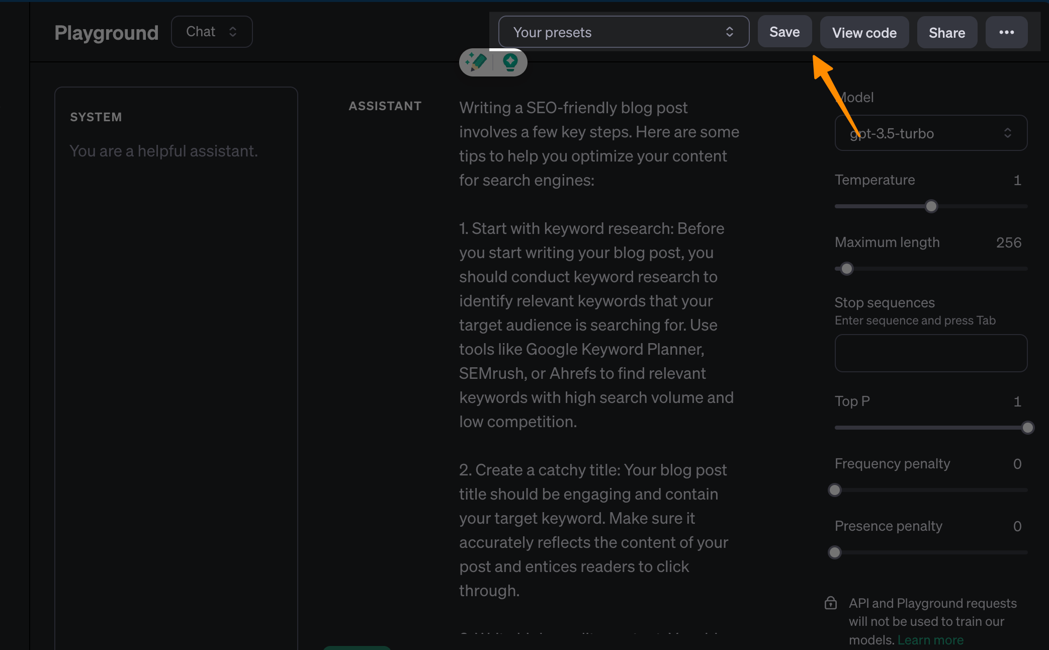 Once you’re satisfied with the AI’s response, don’t forget to save and share your experiments. OpenAI Playground offers the option to save your work so you can easily revisit it later or share it with others.