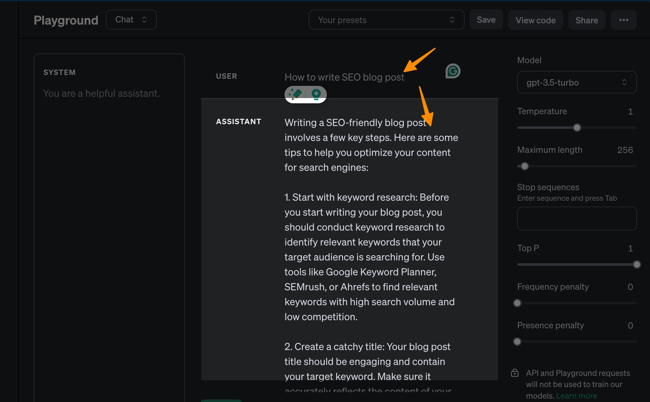 These parameters allow you to custom-tailor the AI’s response to fit your specific requirements or preferences.