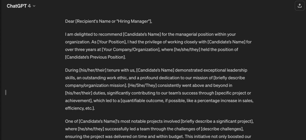 Whether you’re using AI for a recommendation letter generator, cover letter generator, or any other writing tool, the goal is to produce a personalized and strong letter that sheds light on the candidate’s qualifications and suitability for the opportunity at hand.