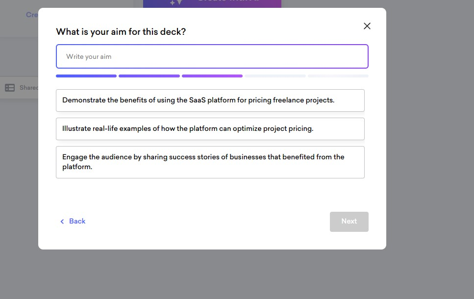 Define Your Presentation’s Aim: Clearly outline what you aim to achieve with your presentation. This could range from educating, informing, to selling an idea or product. Decktopus AI uses this to guide the presentation’s direction.