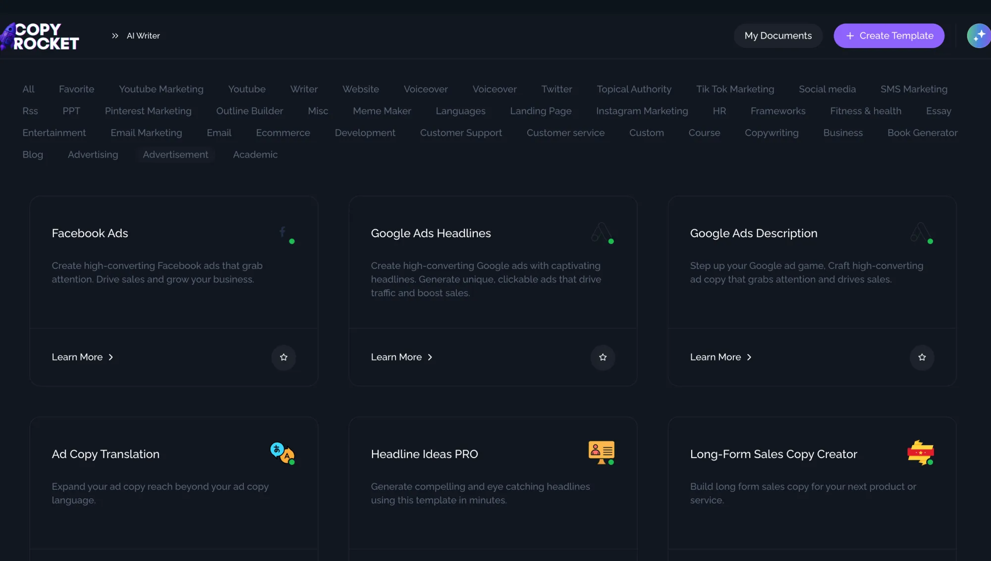 - Write Ad copies using customized AI chatbots or AI Templates.