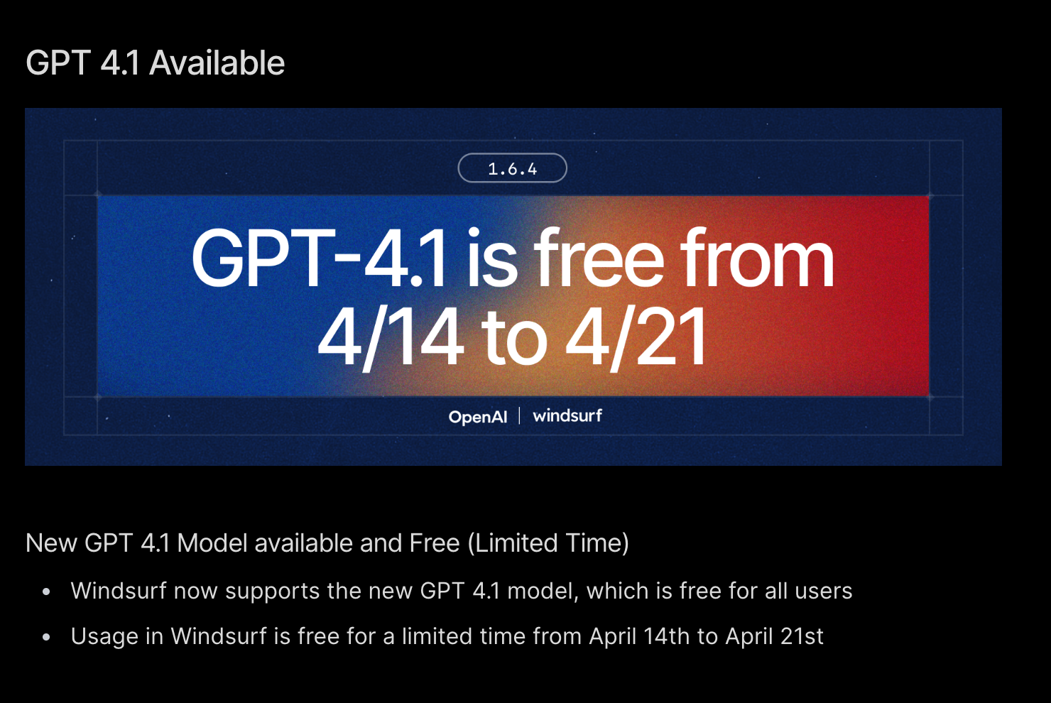 Windsurf is offering free access to the new GPT-4.1 model exclusively through their IDE for a limited time.