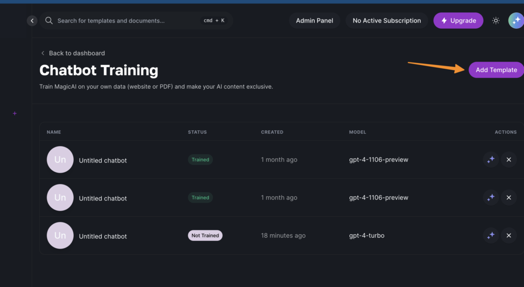 Add a Template: Hit the “add template” button to set your training environment. This is essential for preparing your account for PDF data ingestion.