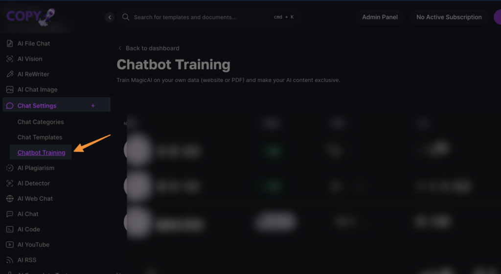 Navigate to Chatbot Training Settings: From your dashboard, go to “chat settings” and select “chatbot training.” This area is where you’ll initiate the training process for your custom LLM.
