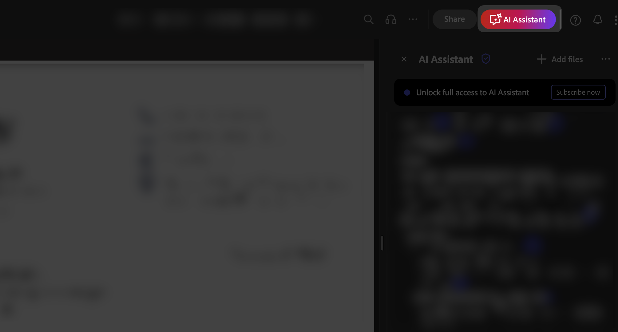 Once the file has opened in Adobe Acrobat, locate and click on the AI Assistant tool.