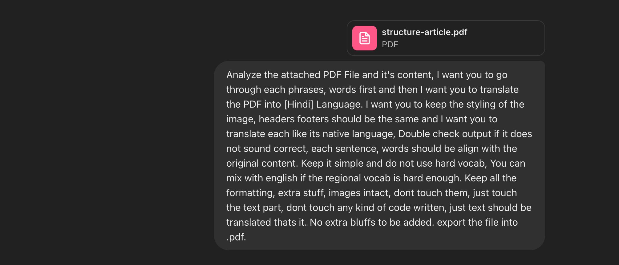 Once you’ve provided the prompt, ChatGPT will start extracting text from your PDF file and translate the content step-by-step into your desired language.