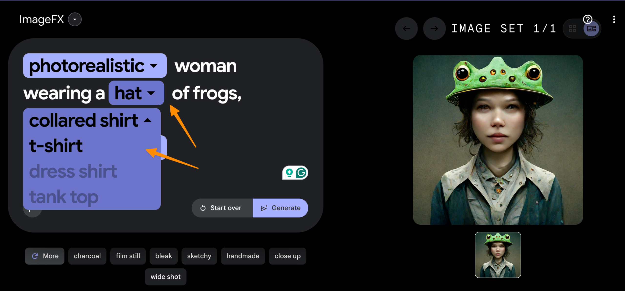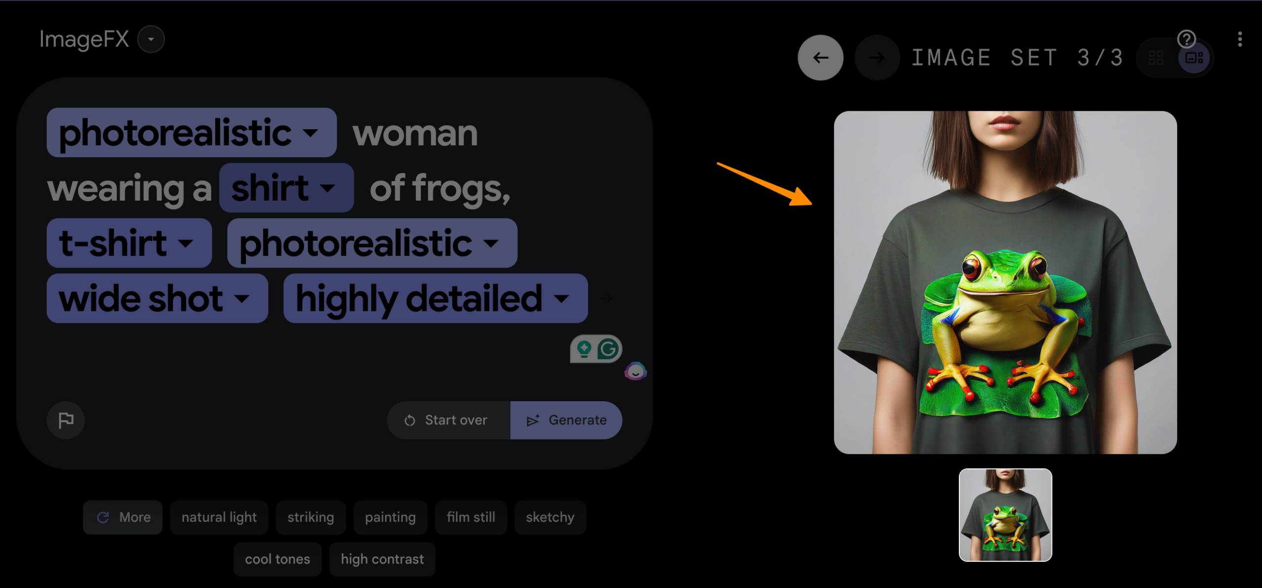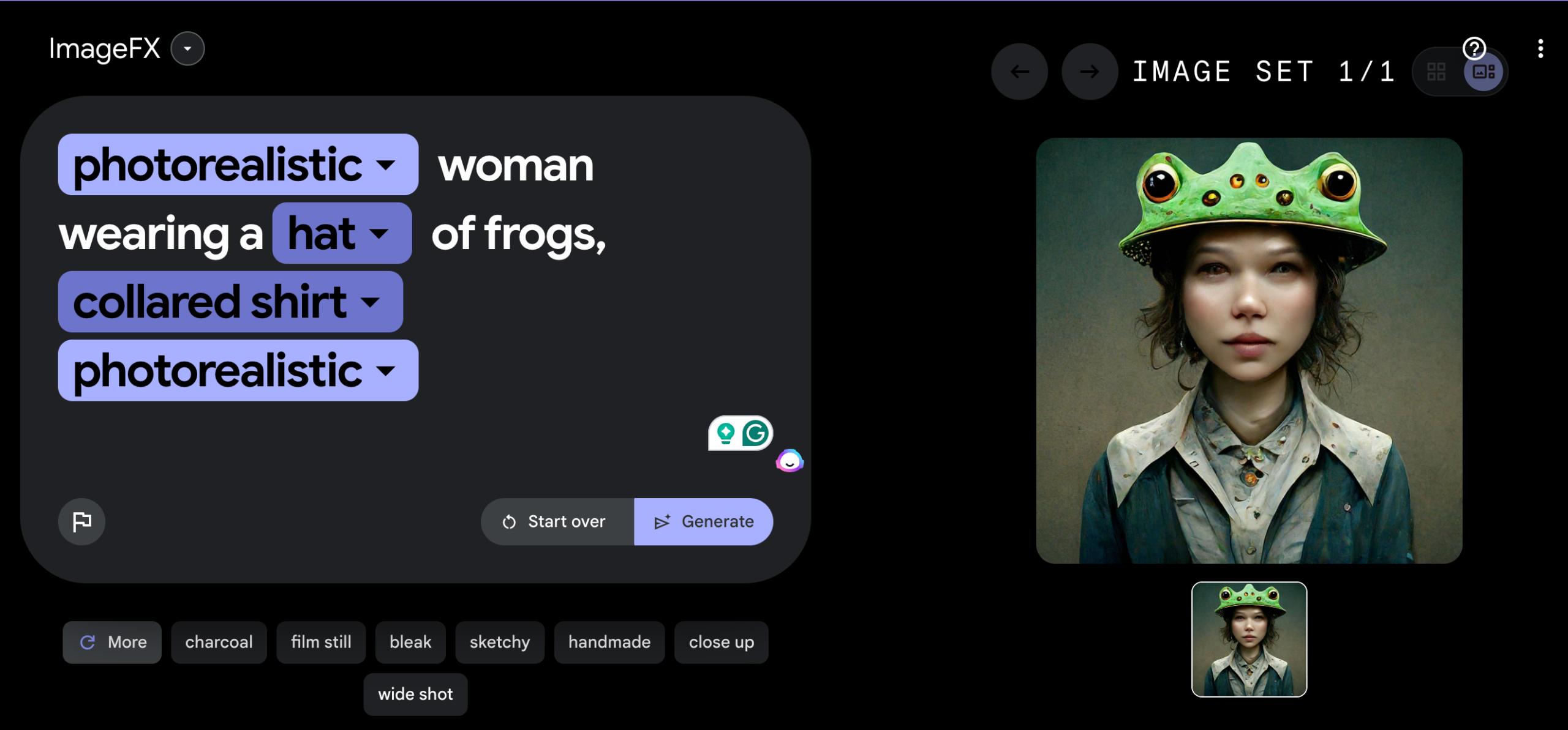 ImageFX encourages this iterative process of creative exploration. Optimize your text prompt and experiment with different prompt selectors to fine-tune your idea.
