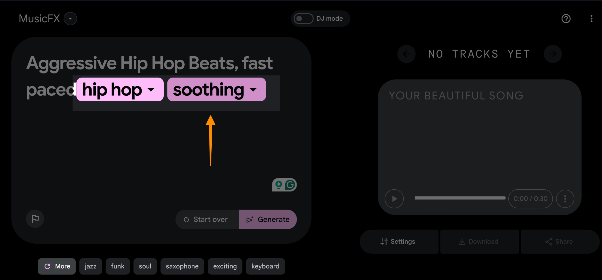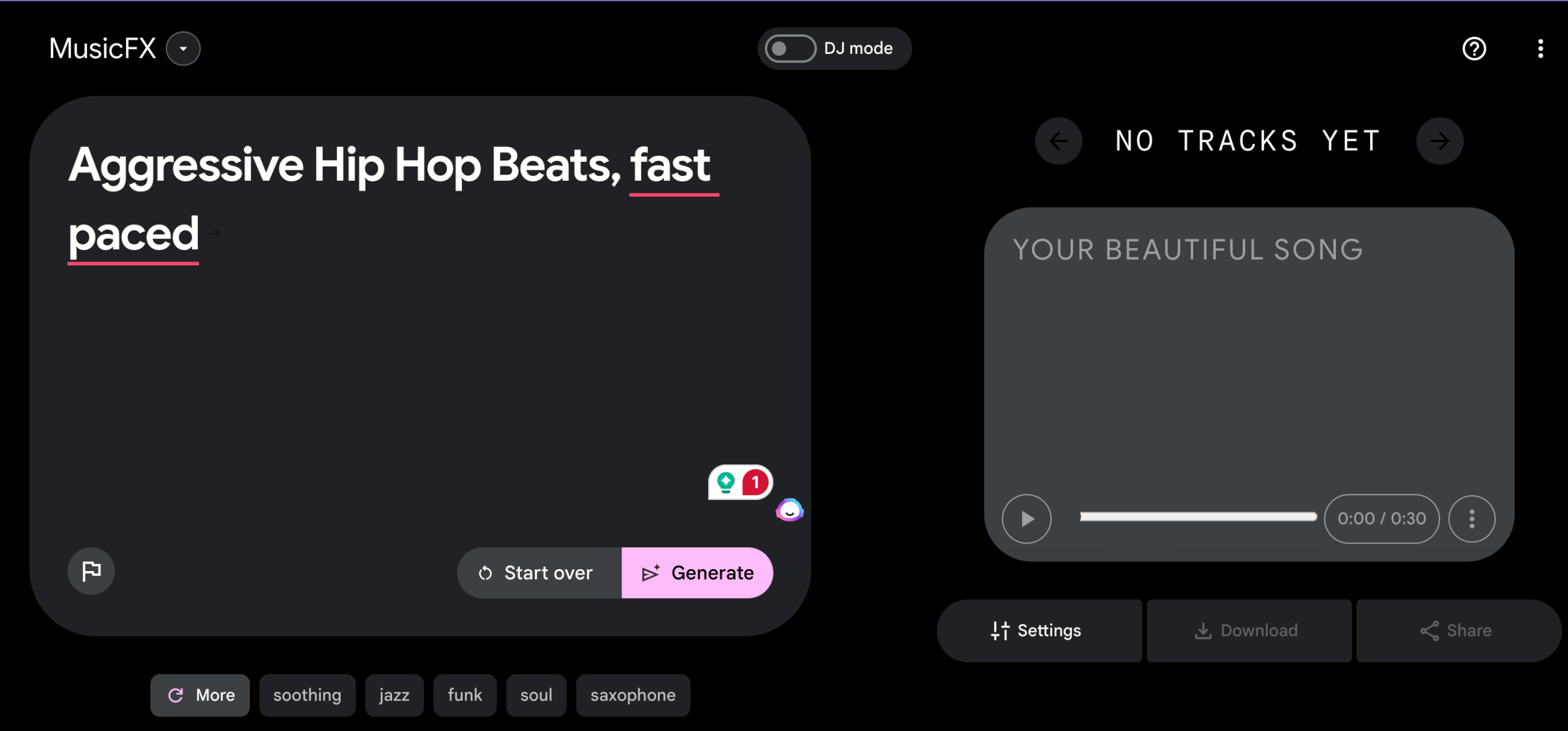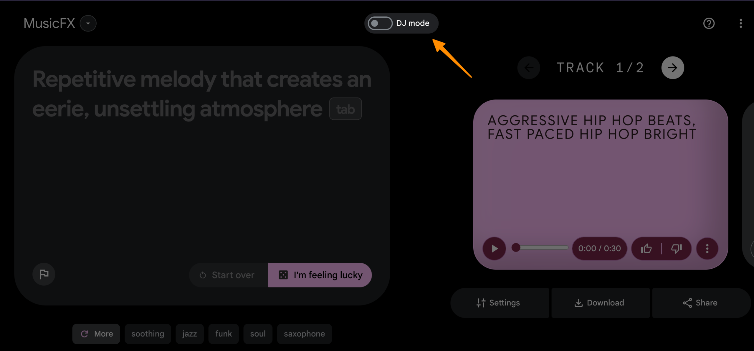 Use MusicFX’s DJ Feature to become an AI DJ