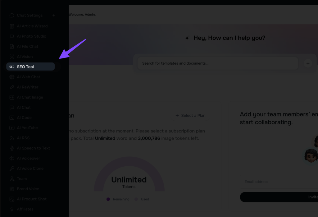 - Select the SEO Tool: From the dashboard, locate and click on the “SEO Tool” option to proceed with optimization.