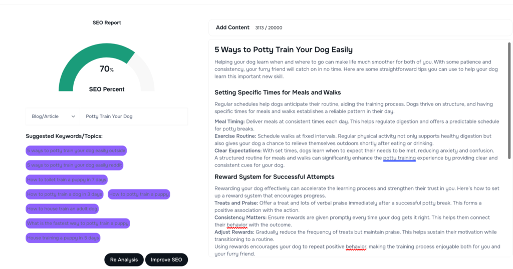 - Review the Output: Examine the feedback provided, which will detail areas for improvement to enhance keyword density and relevance.