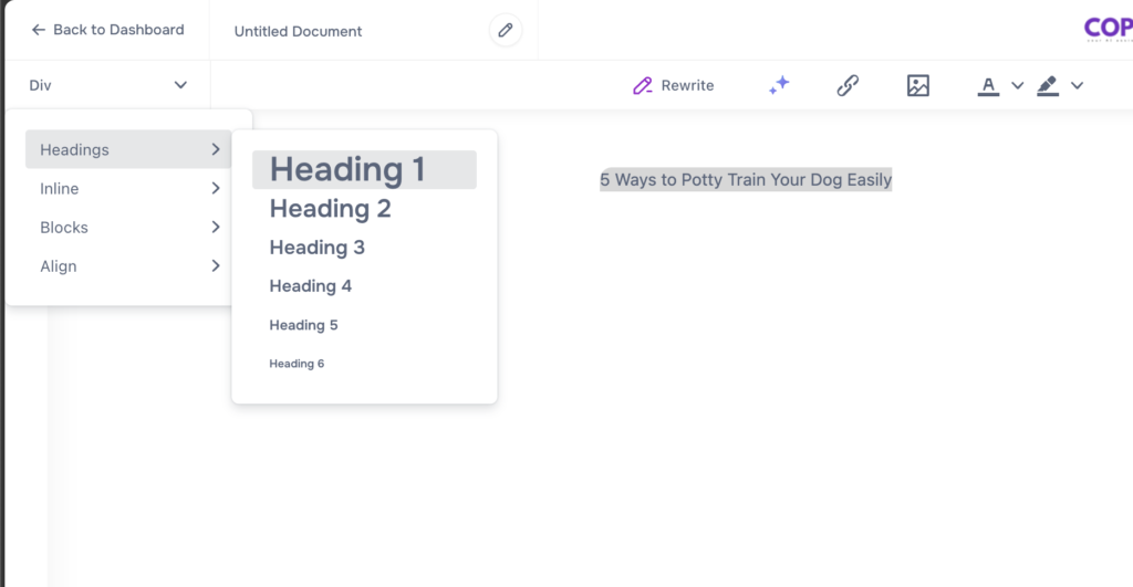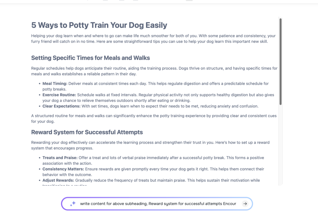 - Create Your Content: Use the steps outlined in the previous section to draft your content within the AI Editor.